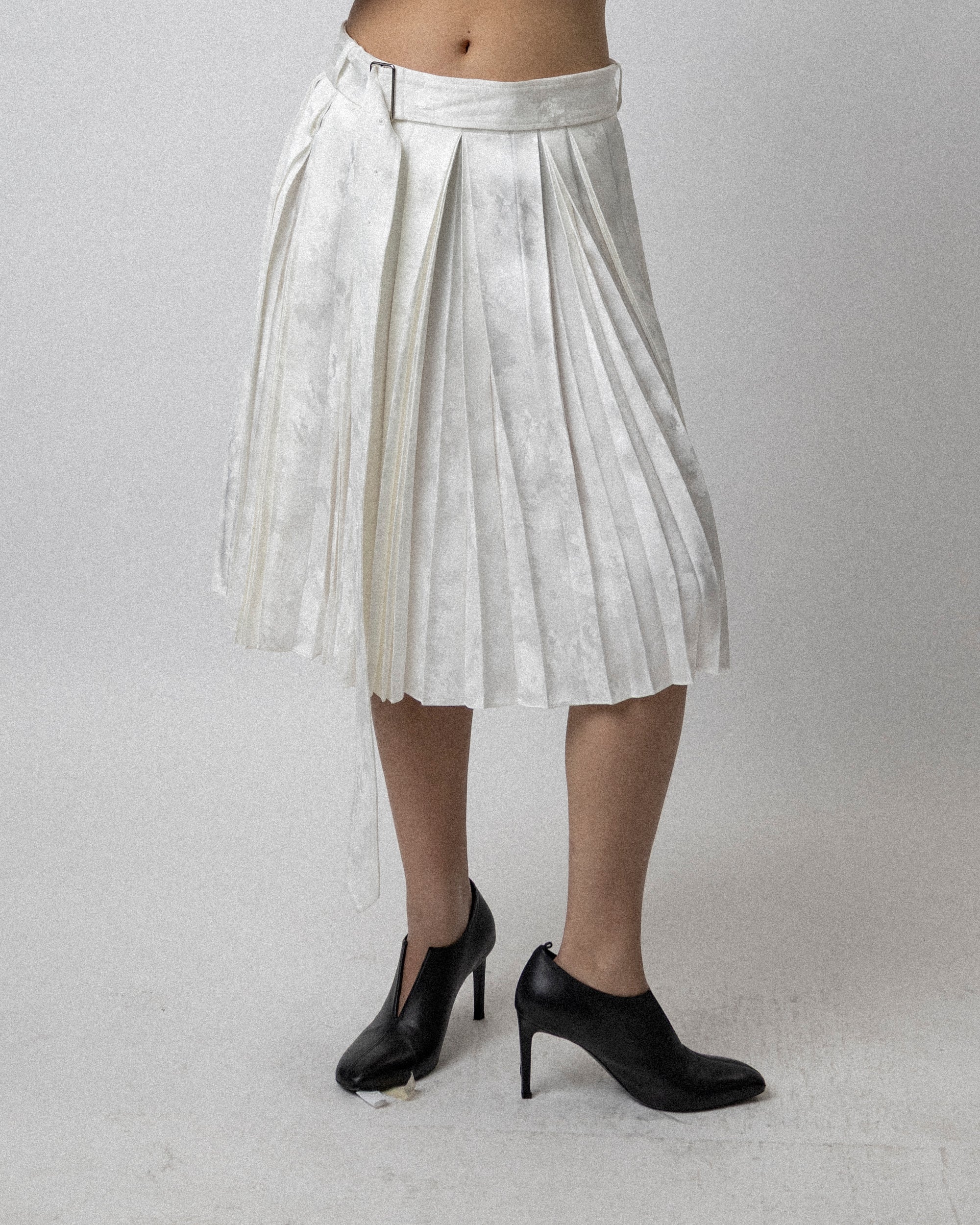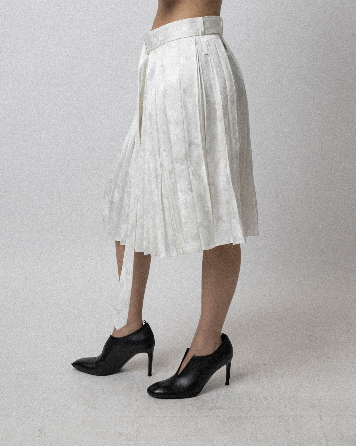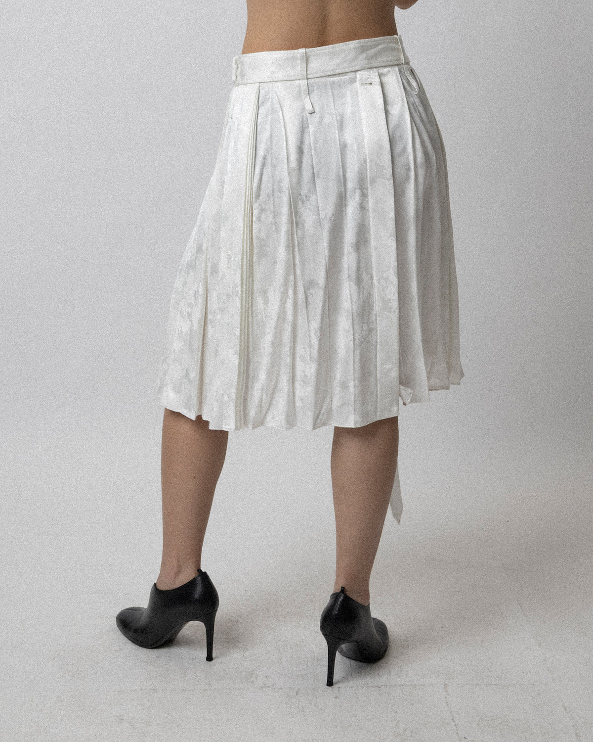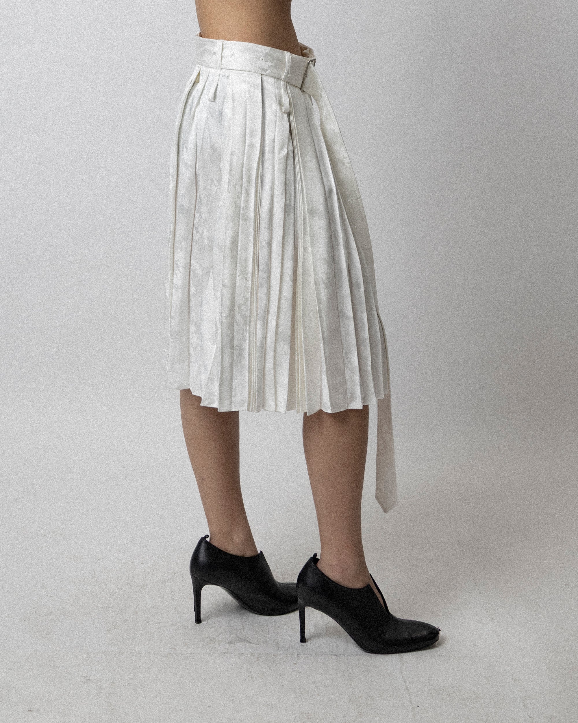 Belted Pleated Skirt White Jacquard/ Waist 32''