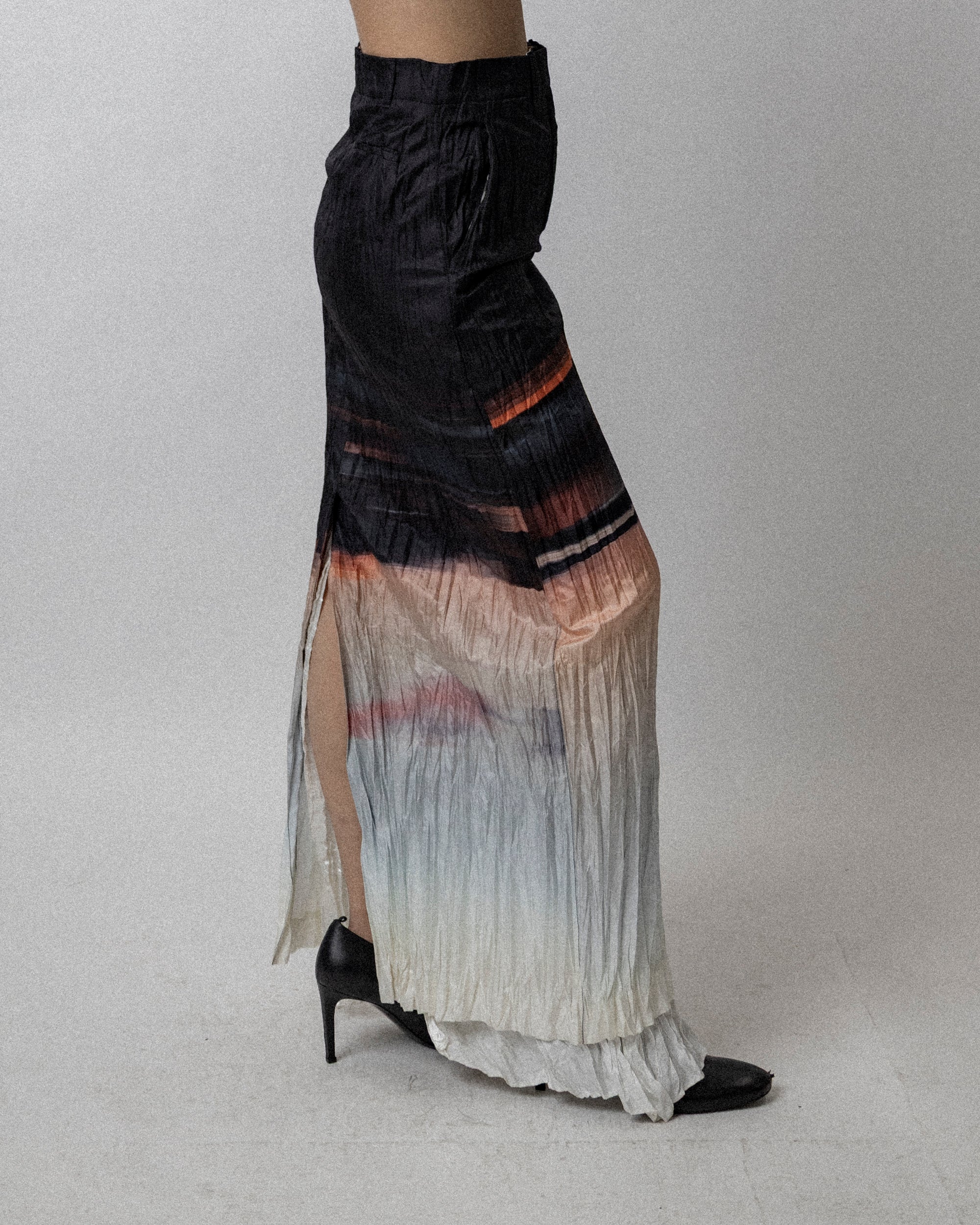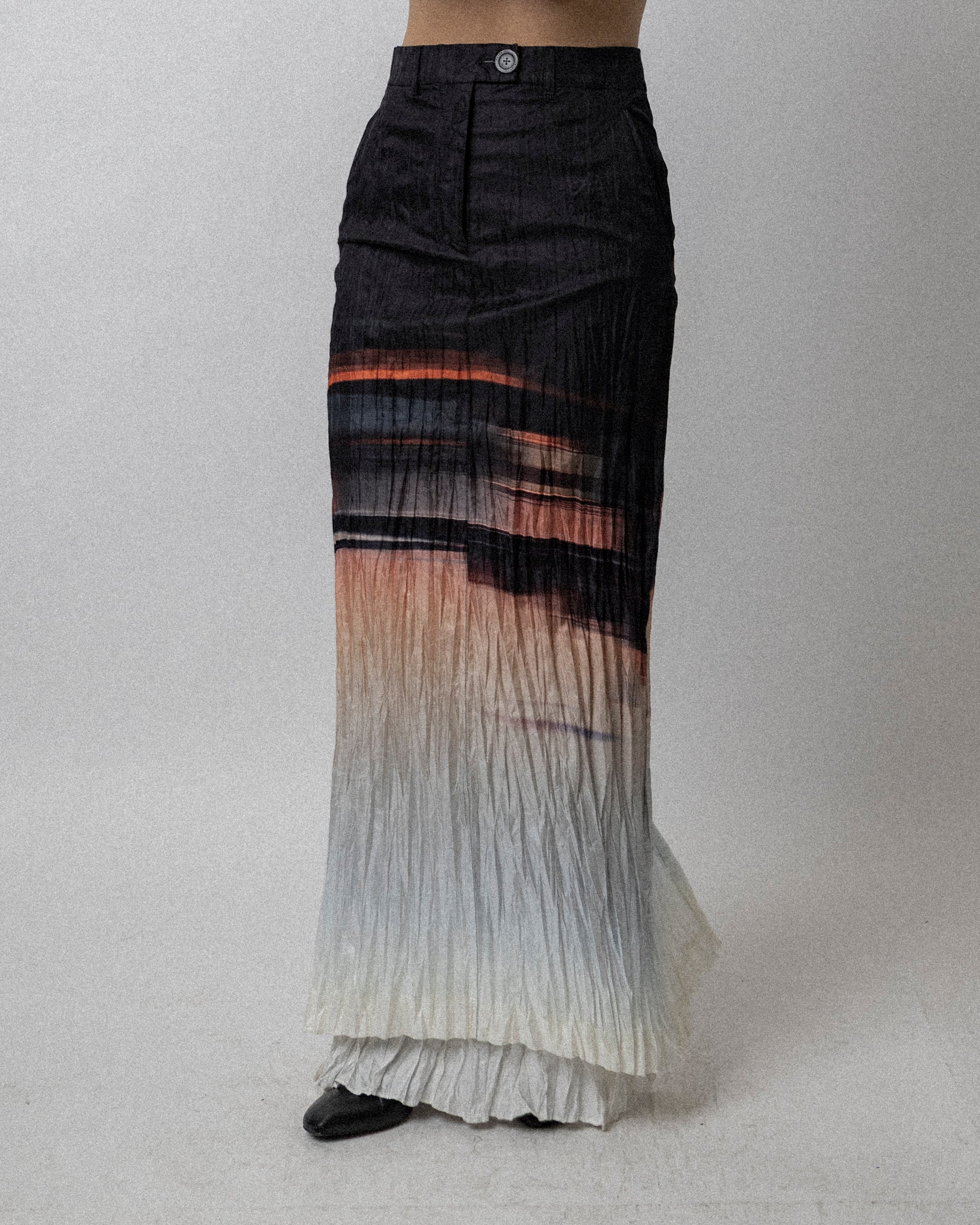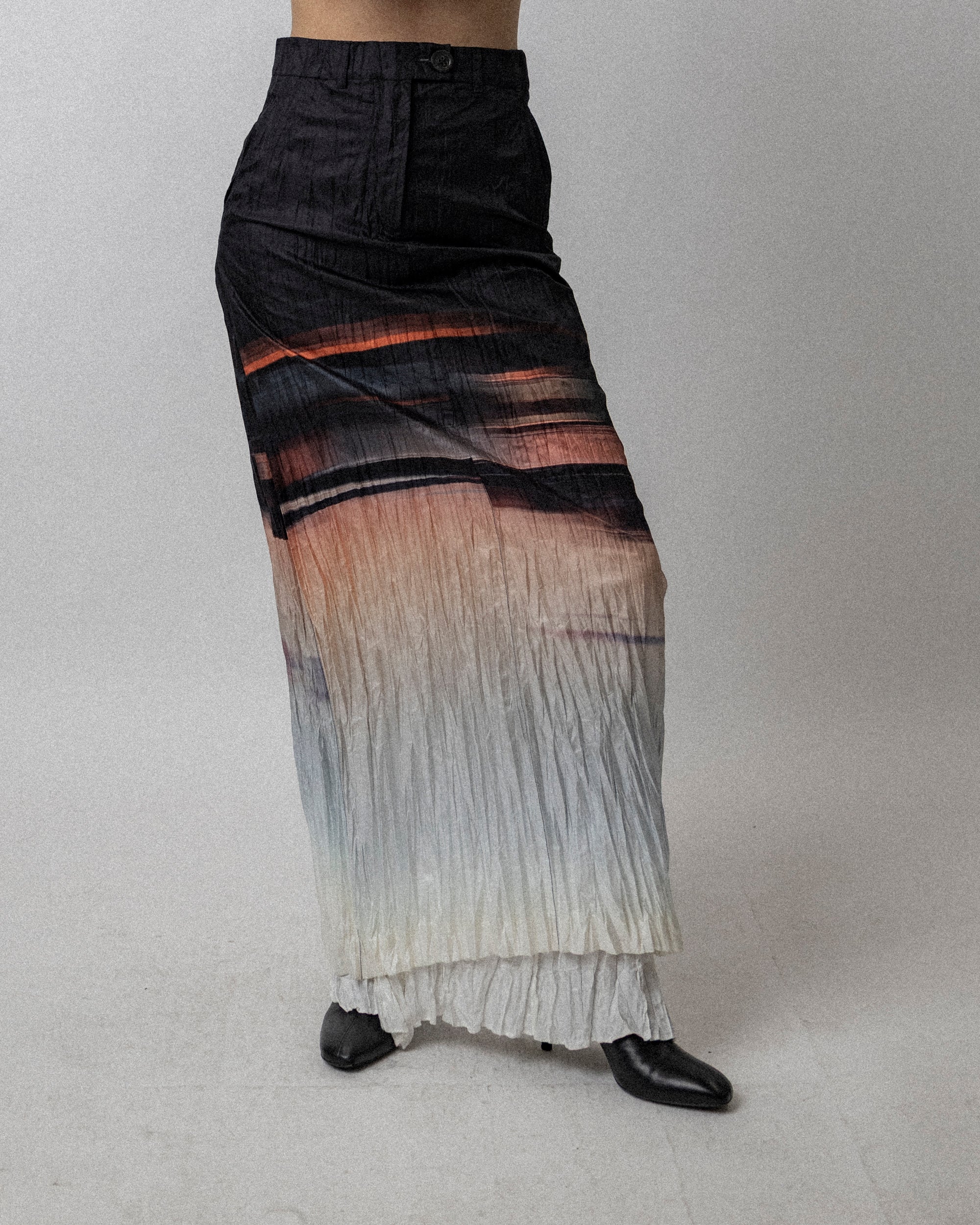 Crushed Maxi Skirt Ombre Sunset Print - Waist 29.5''