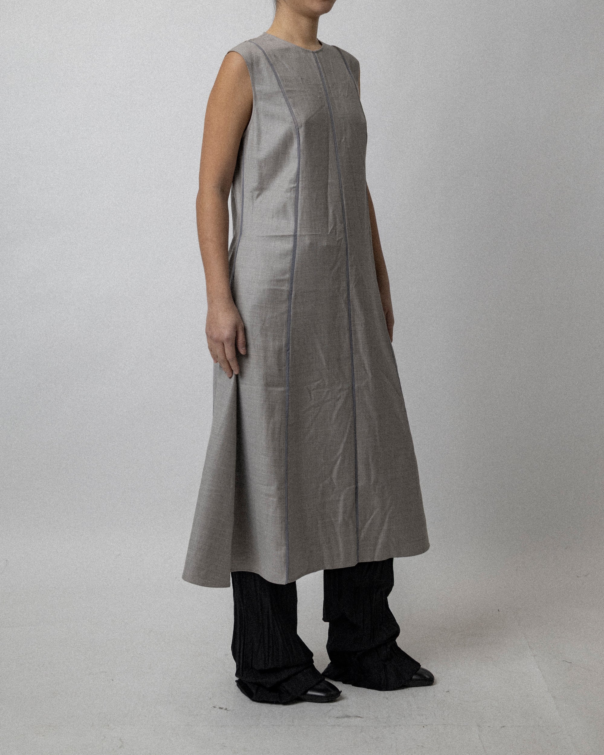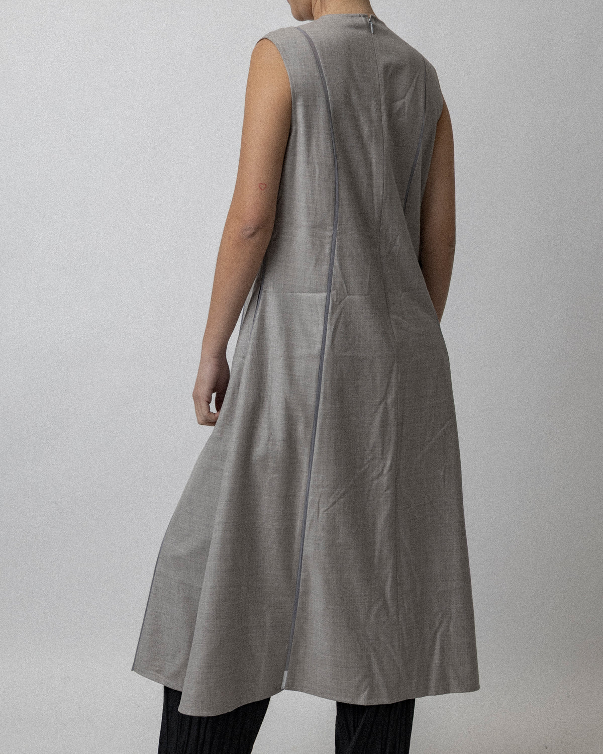 Panel Apron Dress Wool /silk Light Gray - Cross Shoulder 15''